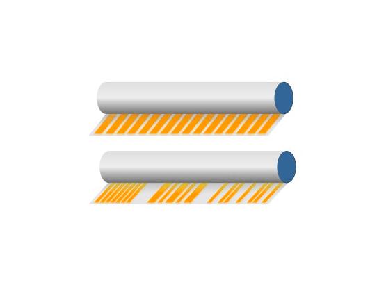 Für solche Anforderungen bieten wir Streifenbeschichtung an. Dabei wird der zunächst flüssige Klebstoff nur in definierten Streifen aufgebracht. Abstände und Breiten lassen sich anwendungsspezifisch anpassen.